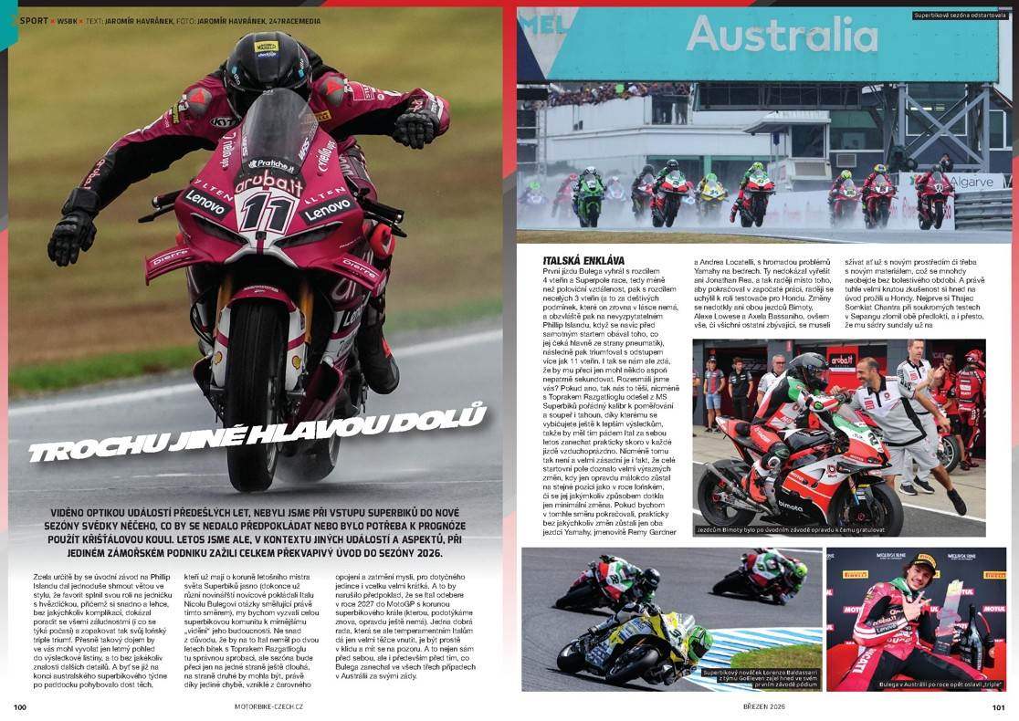 z prvních závodů WSBK dozvíte v aktuálním vydání Motorbike i novinky ze