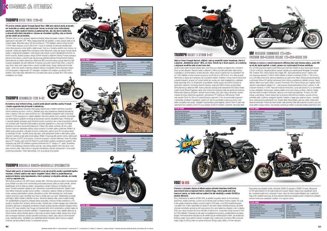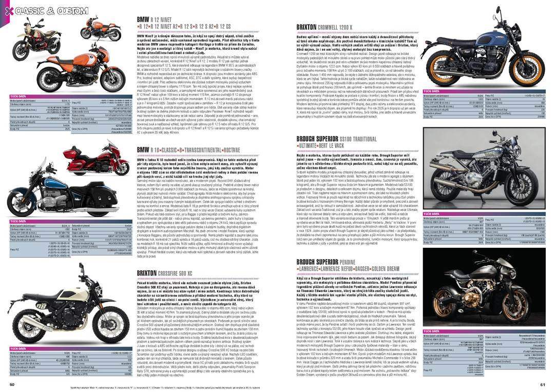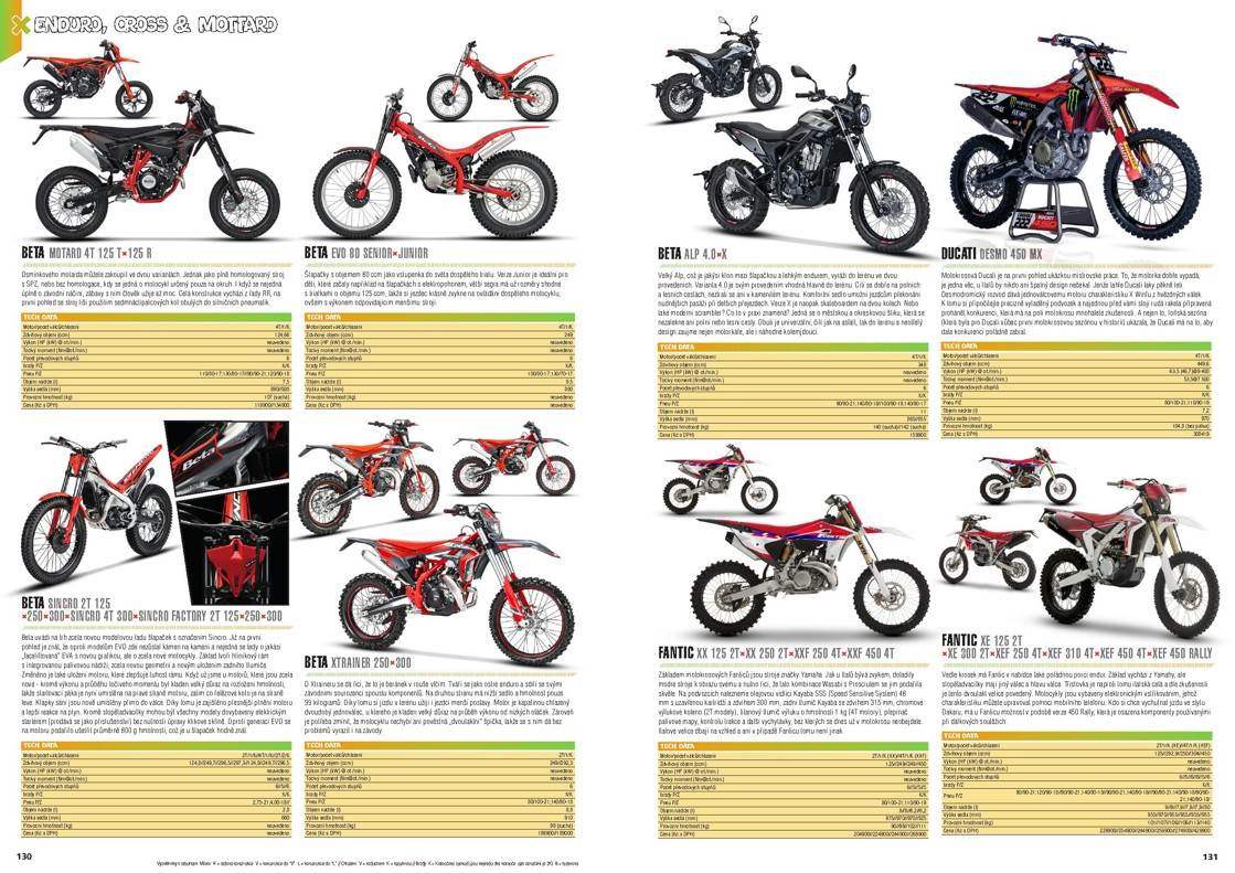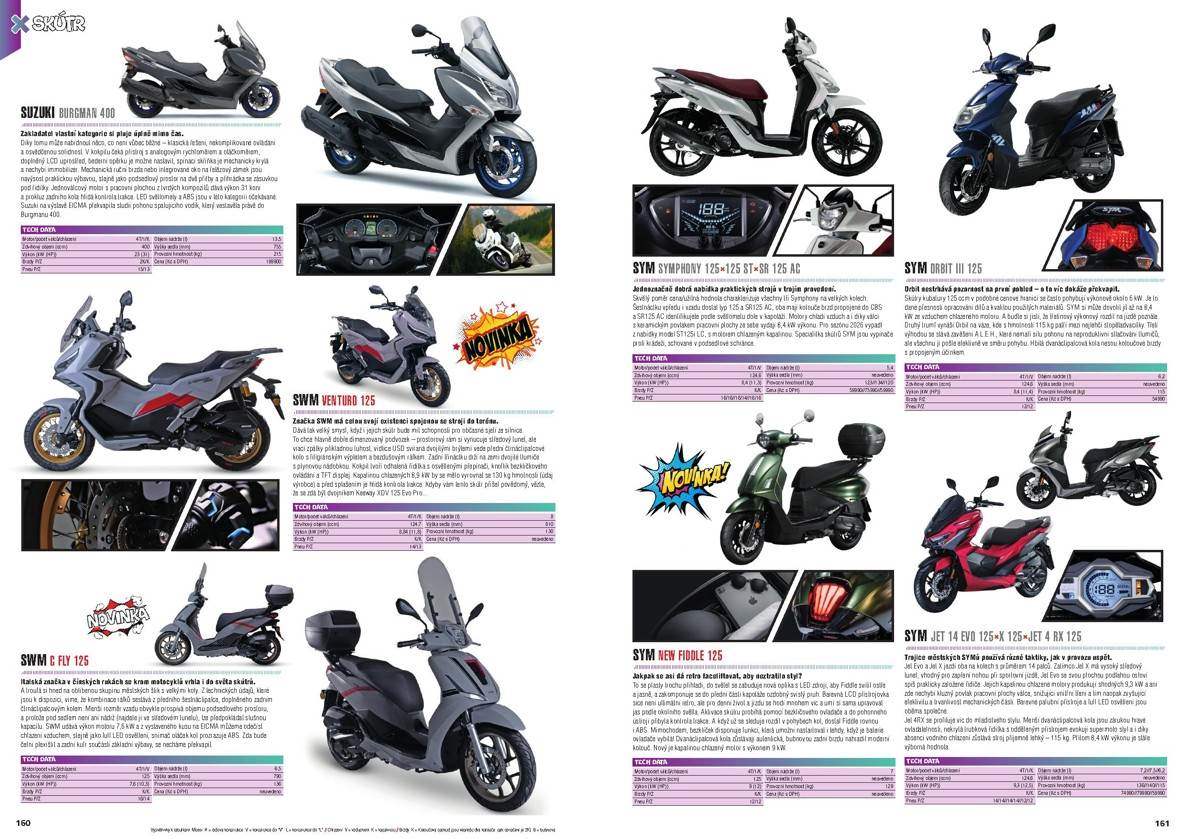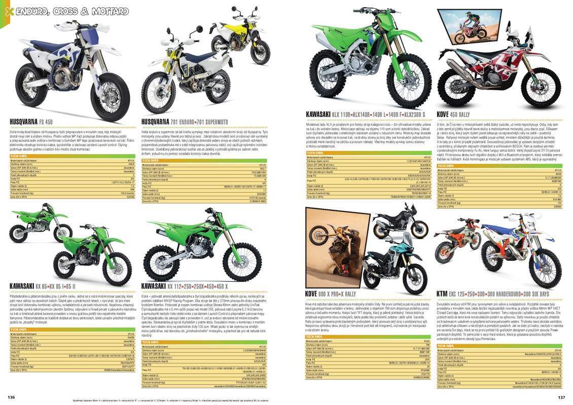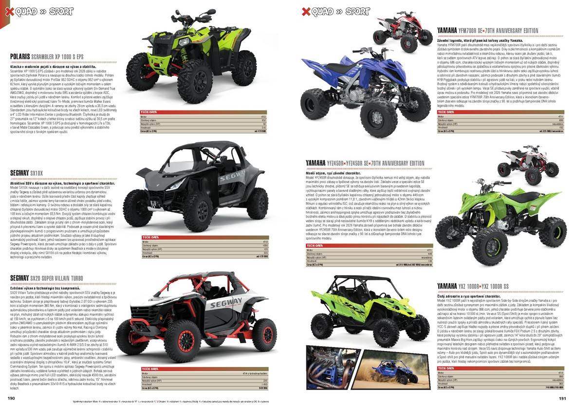 Katalog obsahuje více než 700 modelů, u každého z nich najdete i tabulku se základními technickými údaji. Jestli tedy příštím roce plánujete výměnu své motorky, skútru nebo čtyřkolky za jiný model nebo prostě jen chcete mít přehled, co je v téhle sféře nového, určitě by vás náš Katalog neměl minout – má 214 stran a přestože náklady na jeho realizaci rostou, prodejní cenu jsme nezvýšili.