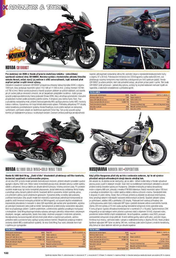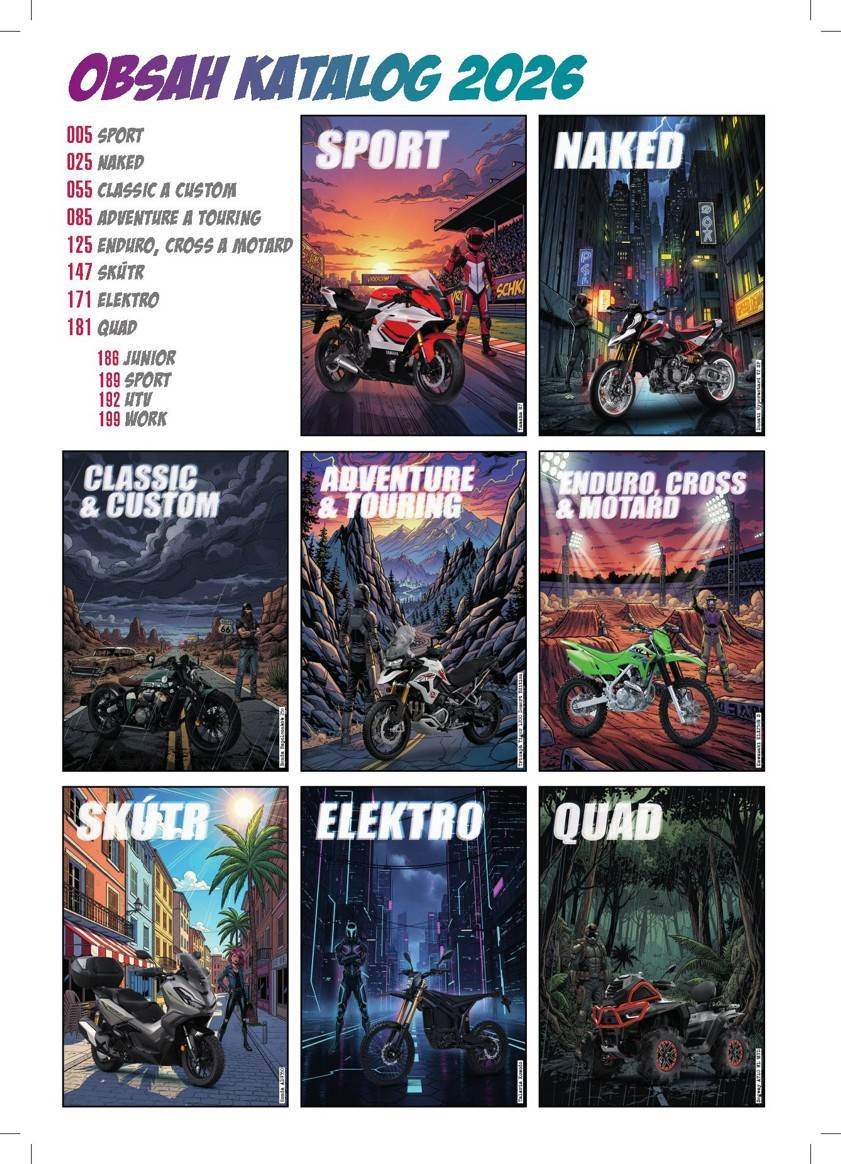 Vánoce jsou doslova za dveřmi a s nimi, tedy vlastně ještě před nimi, tradičně přichází i Motorbike Katalog motocyklů, skútrů a čtyřkolek – letos jde již o 14. vydání. V Katalogu najdete přehled motorek, skútrů a čtyřkolek, které se budou (nebo by se alespoň měly) u nás v roce 2026 prodávat, samozřejmě včetně všech novinek. Nic nového jsme nevymýšleli, takže všechny aktuální modely jsou opět zařazeny do příslušných kategorií - Sport, Naked, Classic a custom, Adventure a touring, Enduro, cross a motard. Samostatnou sekci mají i skútry (pokud je nám známo, jde o jediný ucelený přehled těchto strojů v ČR), na své si přijdou i čtyřkolkáři a fanoušci „zelených“ motorek - tím výjimečně nemyslíme Kawasaki, ale elektrostroje.